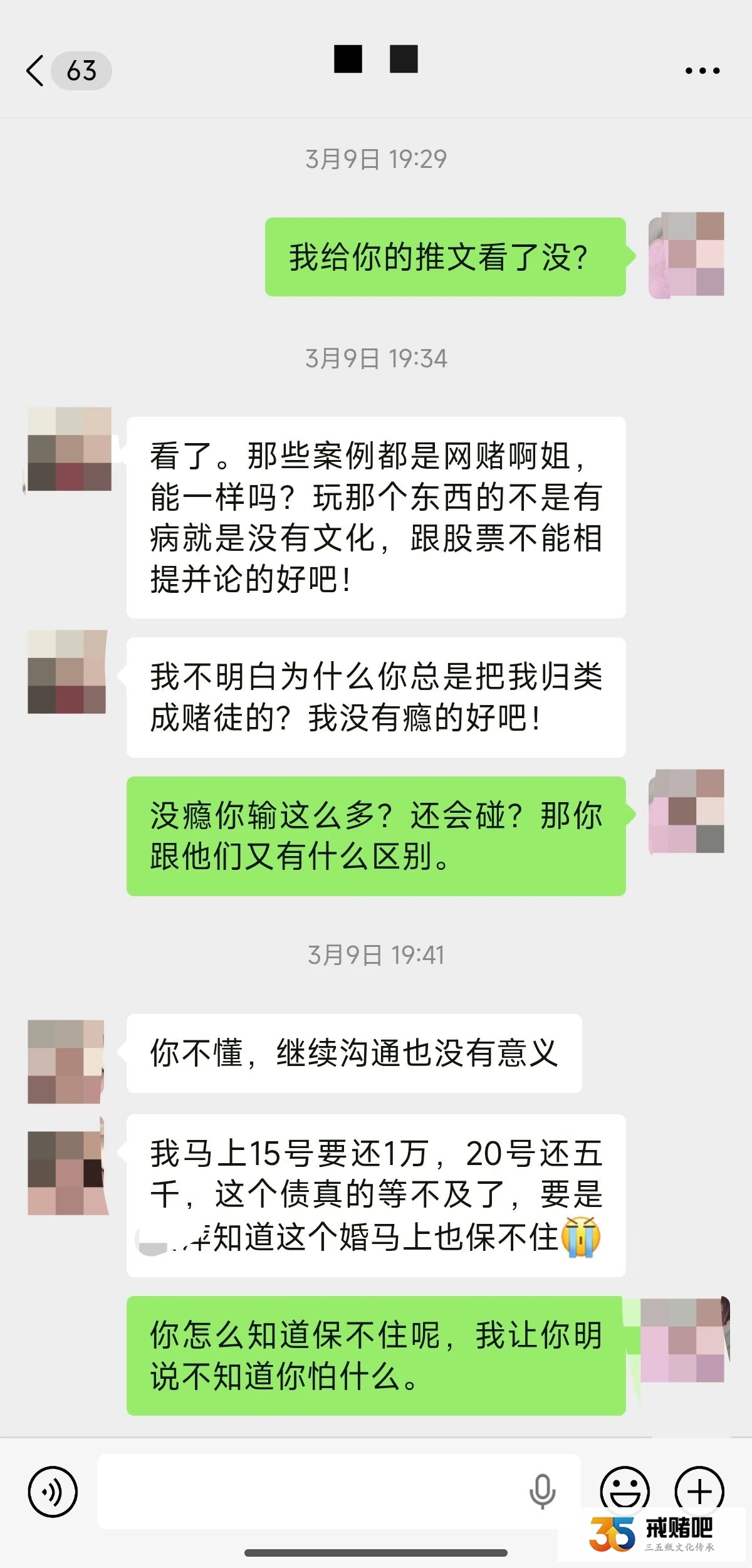 玩这个容易丧失自己的理智,控制自己。每次想赌就隔一段时间,不要想赌里面赢的钱是自己的钱,也不要生气了去赌,更不要花钱就找赌报销。自己做错了事情,自己要对自己负责,要纠正自己,不要总是找理由借口。安安心心挣钱,安安心心过好日子,才是长久之计。你不是天选之子,也不可能一夜暴富,更不要相信什么导师、什么人带你挣钱,带你挣钱都是想挣你的。天下没有掉馅饼的好事,踏踏实实做人做事,多自律起来。
